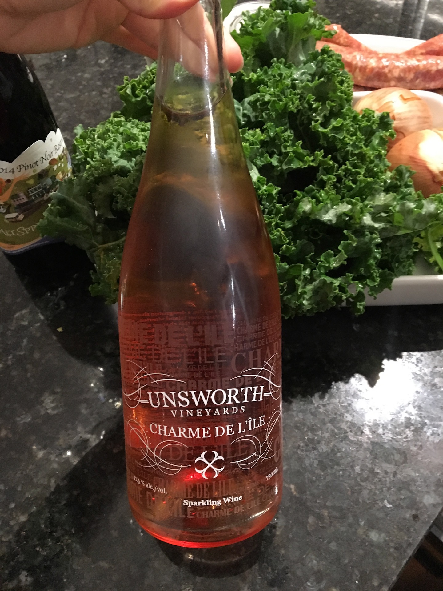 And so we made a White Bean and Kale Soup with Sausage and some biscuits. It was hearty and delicious and went very well with the Salt Spring Vineyards Pinot Noir that I’d brought (my wine club shipment came in last month – hooray!) I’m looking forward to making it for the Brit. It’s definitely a meal suited to these cold winter nights that have come to stay for a while.
