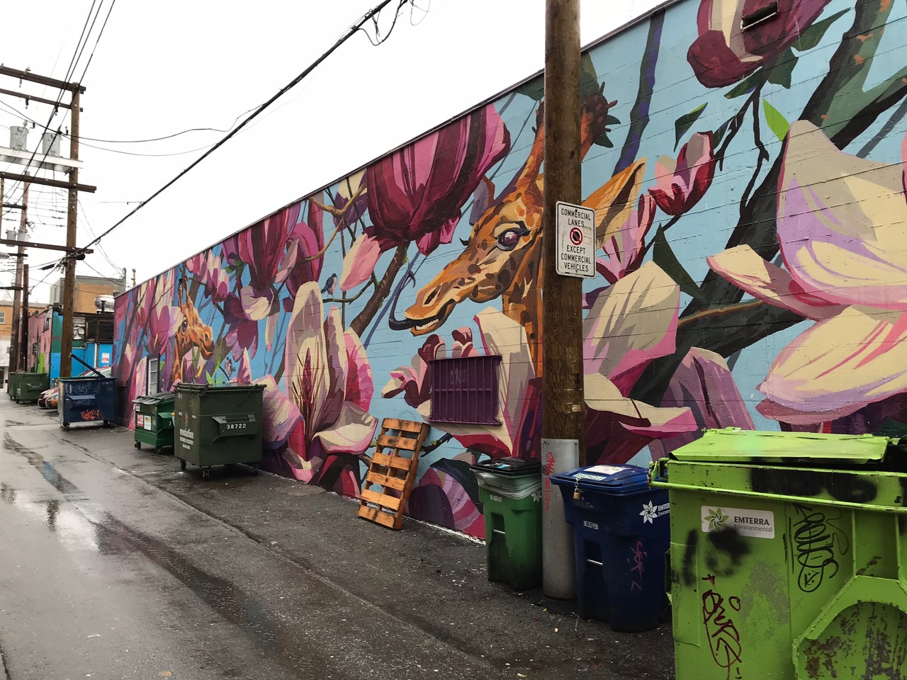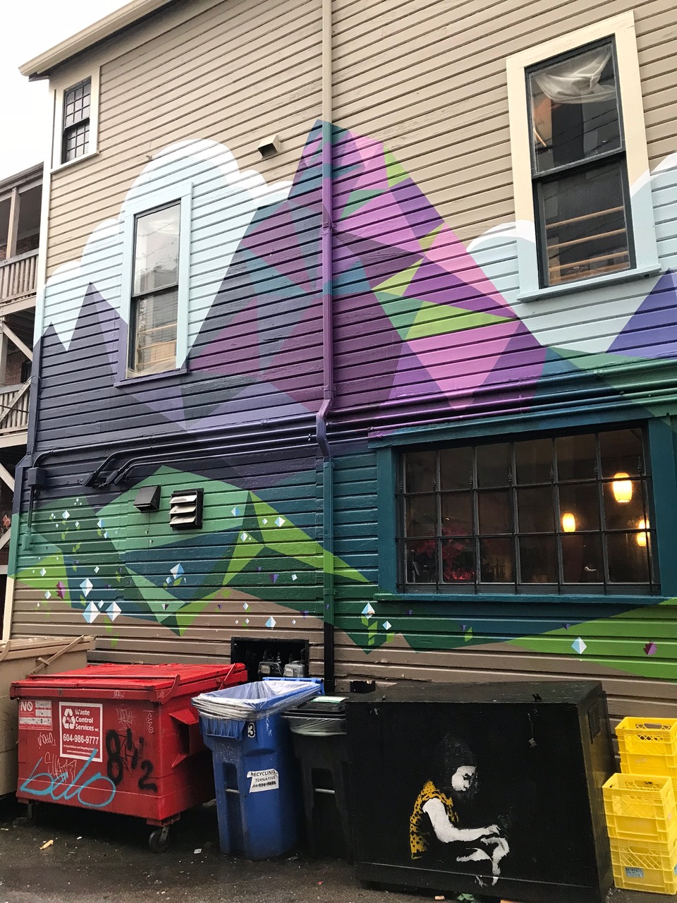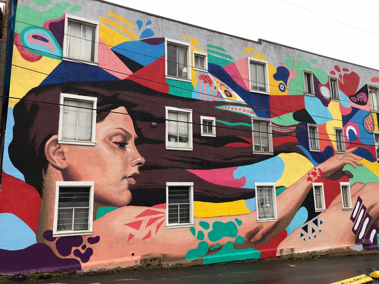 In recent years, Vancouver has become known its murals and for Vancouver Mural Festival. Art is very subjective so there were a few murals that I was indifferent to in terms of subject matter and style. But, I absolutely admire the amount of time, talent and thought that goes into these lengthy works of art. Sides of buildings are not an easy canvas and we have slightly unpredictable weather here!