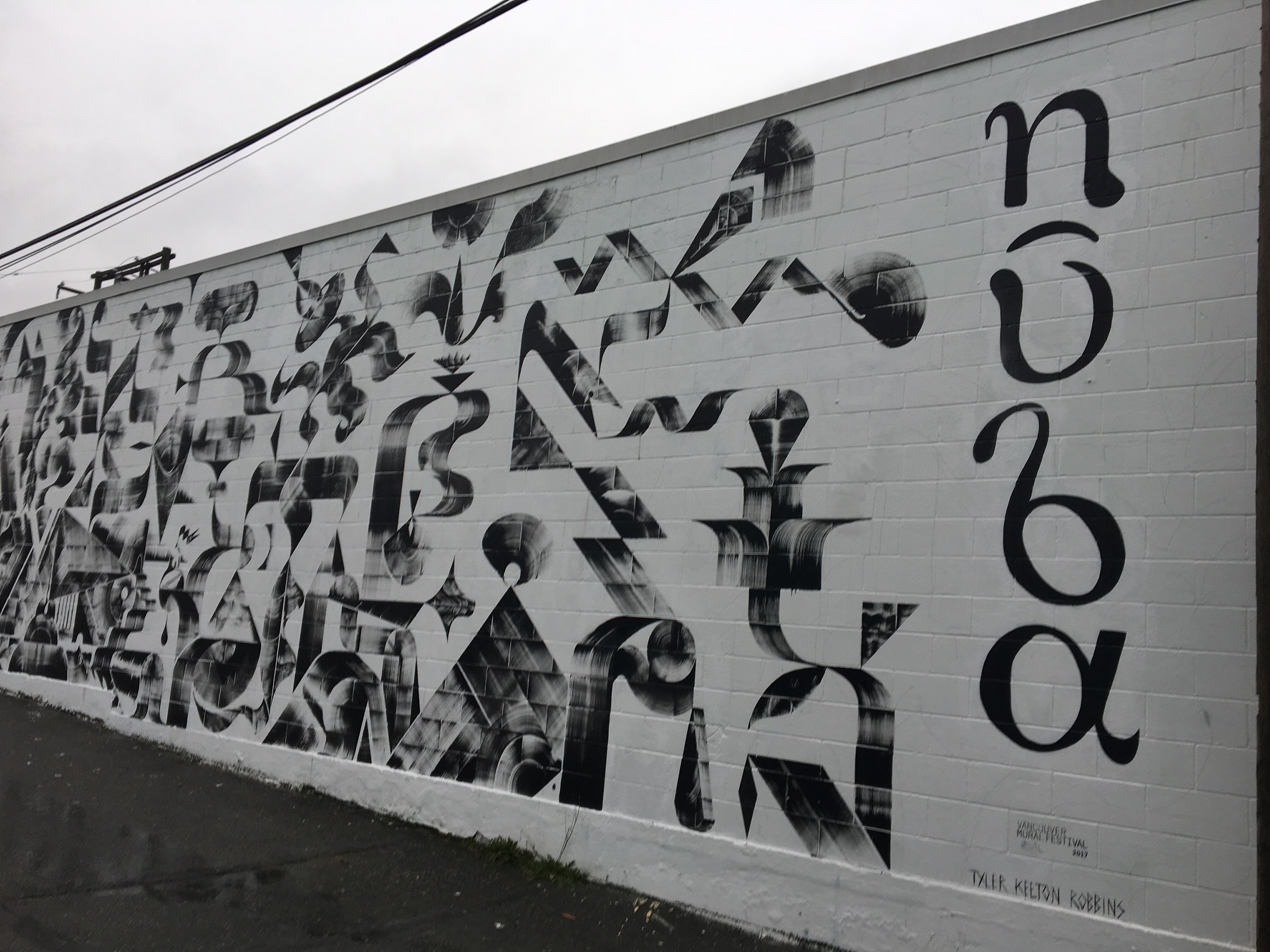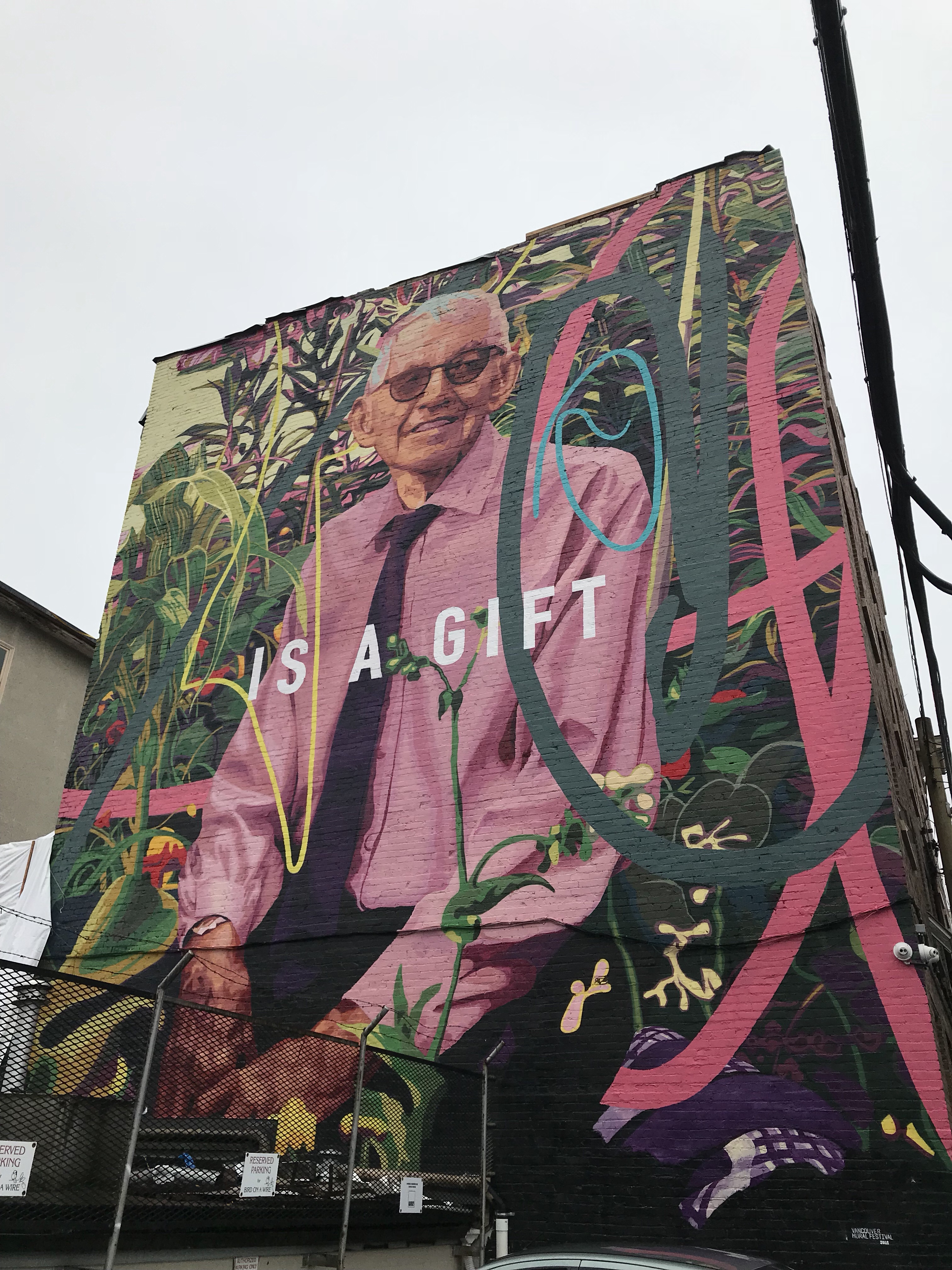 My first favourite of the murals was Drew Young’s ‘The Present is a Gift’.