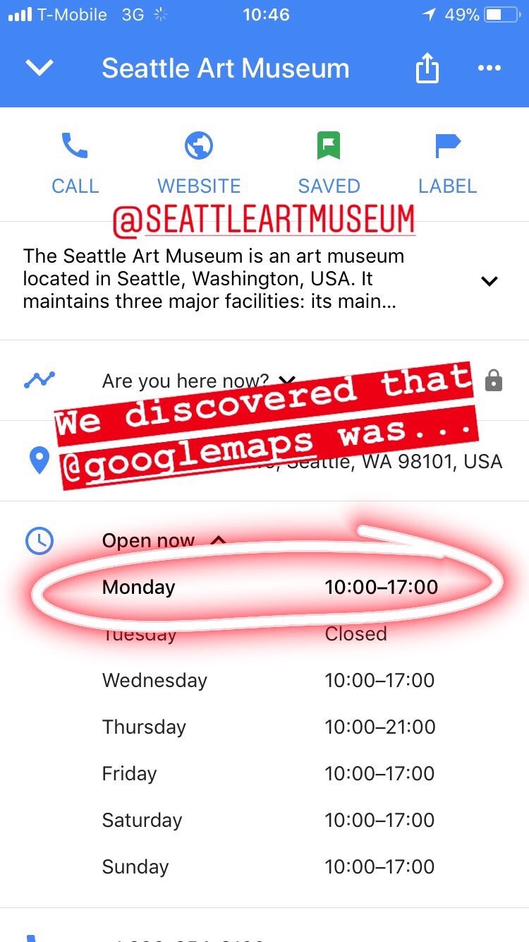 I checked today and Google Maps has since updated their hours info for SAM. THANK YOU!